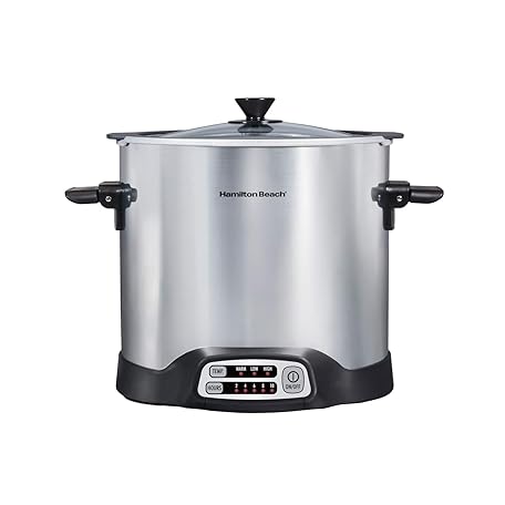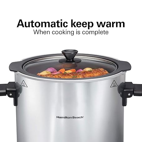Thông tin sản phẩm Hamilton Beach Sear & Cook Stock Pot Slow Cooker with Stovetop Safe Crock, Large 10 Quart Capacity, Programmable, Silver (33196)
