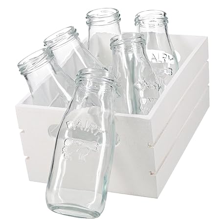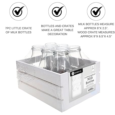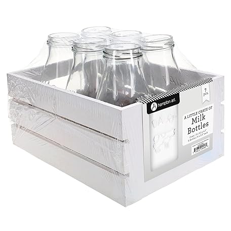 Hampton Art Little Crate Of Milk Bottles 7Pc, Milk Jar, Glass Bottles, Glass Jars, Bottle, Vintage Bottle, Bottles For Crafts