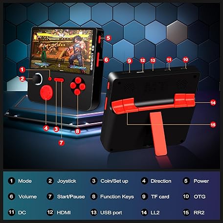 Thông tin sản phẩm Handheld Game Console 5 Inch Screen, Retro Gaming Console with 64G Built-in 15000+ Classic Games, 1280x720 Pixels, Game Searchable, 5000mAh Battery, Portable Pocket Arcade with Desktop Stand (Black)