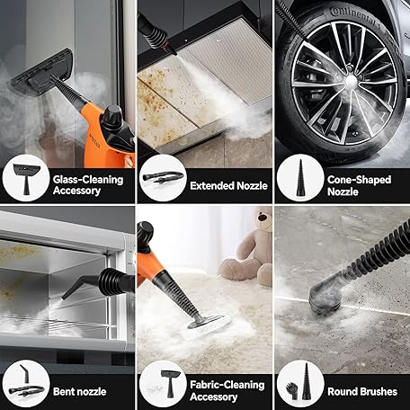 Sản phẩm Handheld Steam Cleaner, Steam Cleaner with 16 PCS Accessory & Safety Lock, 500ML Large Capacity Natural Surface Steam for Cleaning, Multipurpose Steamer for Home, Car, Bathroom, Grease (Orange) đang được bán với giá ưu đãi là $54.4891 tại nước Mỹ.
