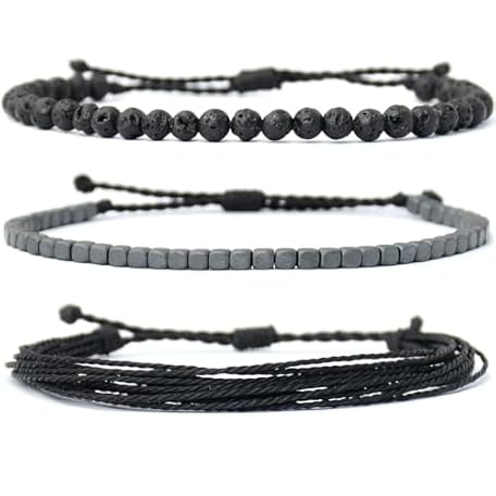 • Handmade Natural Stone Beaded & Hematite Healing Bracelet Gift for Men-Set of 3 Stackable Adjustable Waterproof String Rope Bracelets