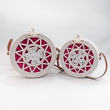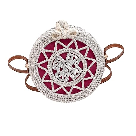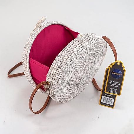 Sản phẩm Handwoven Round rattan bag for Women Shoulder bags with tassels and leather strap (White color Pink Tassel large) đang được bán với giá ưu đãi là 0 tại nước Mỹ.