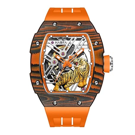 Haofa Skeleton Automatic Mechanical Watch for Men Tiger Stripes Carbon Fiber Bezel Watch Sapphire Luminous Waterproof Mens Business Casual Watch 1973