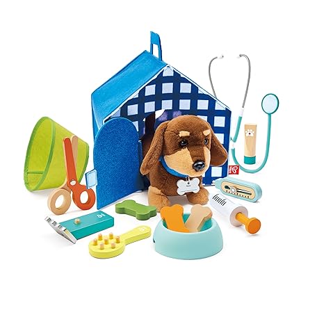 • Hape Small Veterinarian Kit | Wooden Toy Kit for Kids | Portable Veterinary Clinic