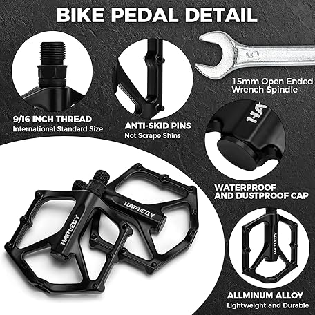 Thông tin sản phẩm Hapleby Premium Bike Pedals of 9/16 Inch, Professional Mountain and Road Bike Flat Pedal with 2 Sealed Bearings, Wide Paltform and Lightweight of Bicycle Pedals, Come with Pedal Wrench 1PCs