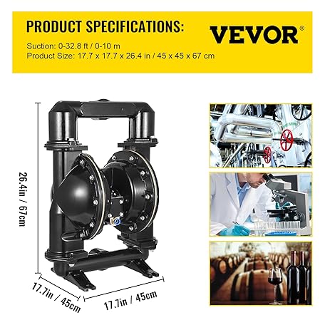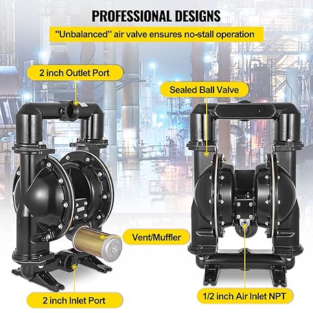 Thông tin sản phẩm Happybuy Air-Operated Double Diaphragm Pump, 2 inch Inlet & Outlet, Aluminum Alloy Body, 158.4 GPM & Max 120PSI, Nitrile Diaphragm Transfer Pump for Petroleum, Diesel, Oil and Low Viscosity Fluids