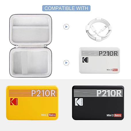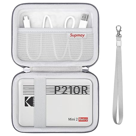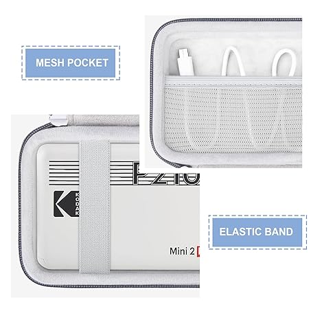 Hard Carrying Case for Kodak Mini 2 Retro 4PASS Portable Photo Printer (2.1x3.4 inches), Photo Printer Travel Bag Storage Holder with Mesh Pocket for USB Cable, Photo Paper, Grey