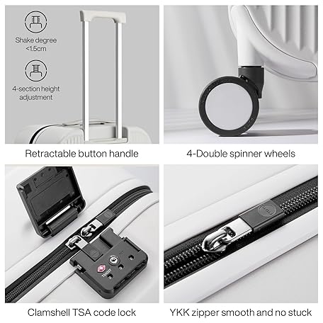 Sản phẩm Hardside PC Suitcase 20 Inch Carry On Luggage Spinner Wheels TSA with Cover, Smoke White đang được bán với giá ưu đãi là $130.7891 tại nước Mỹ.