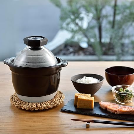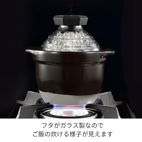 HARIO GNR-150-B-W Rice Pot with Glass Lid, 1 to 2 Cups, Visible Inside, Heat-resistant Glass, Ceramic, Made in Japan