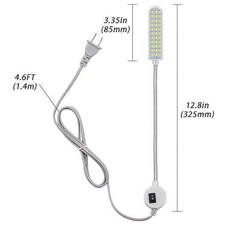 Thông tin sản phẩm Harmiey Sewing Machine Light (36LEDs) Gooseneck Work Light with Magnetic Mounting Base, White Soft Light for Lathes, Drill Presses, Workbenches (2PACK)