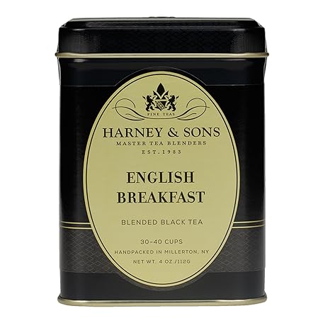 Thông tin sản phẩm Harney & Sons English Breakfast Black Tea – 4oz Loose Leaf Tin, Pure China Keemun, Bold, Full-Bodied Flavor, Great for Hot, Iced, or Teapot Brewing