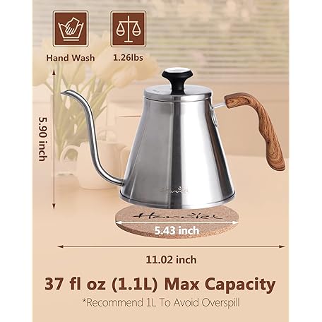 Thông tin sản phẩm Harriet Gooseneck Kettle with Thermometer for Pour Over Coffee and Tea, 37 fl oz, Stainless Steel, Durable 3-Layer Base, Ideal Spout for Precision Pouring, Compatible with all Stove Tops