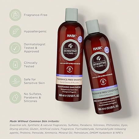 Thông tin sản phẩm HASK Sensitive Care Shampoo + Conditioner Set | Fragrance-Free, Paraben-Free, Sulfate-Free, Gluten-Free, Vegan, Cruelty-Free, Color Safe | 12oz each