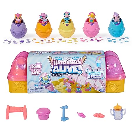 Thông tin sản phẩm Hatchimals Alive, Pink & Yellow Egg Carton Toy with 6 Mini Figures in Self-Hatching Eggs, 11 Accessories, Gifts & Stocking Stuffers for Girls & Boys Ages 3 & up