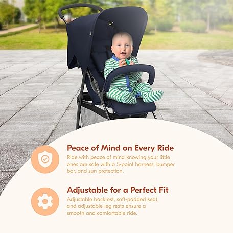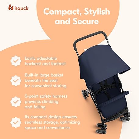 • hauck Lightweight and Compact Travel Baby/Toddler Foldable Stroller, Sport, Dark Blue