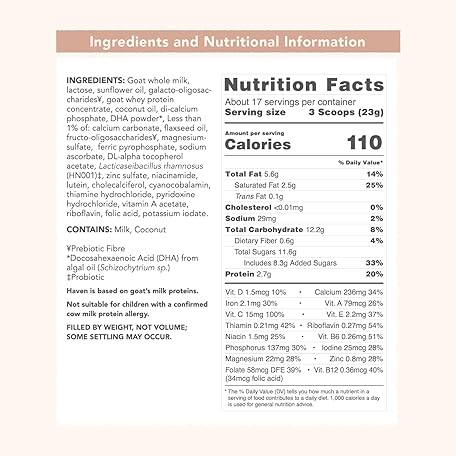 Thông tin sản phẩm Haven Goat Toddler Formula, Grass Fed Whole Goat Milk Powder for Toddlers With Probiotics, Prebiotics, Lutein and Omega 3 Dha, Easy Digestion Formula, Non GMO, American Made, 14.1 Oz
