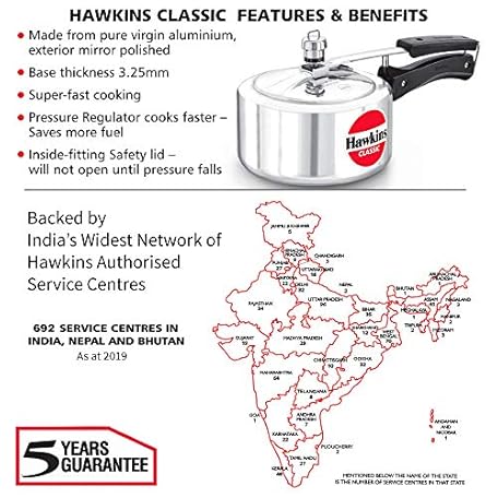 Thông tin sản phẩm HAWKINS 2 Litre Classic Pressure Cooker, Best Inner Lid Cooker, Small Cooker, Silver (CL20)
