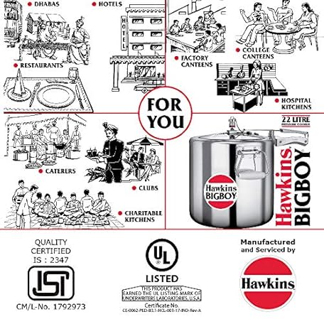 Thương hiệu HAWKINS là cái tên nổi tiếng được rất nhiều khách hàng trên thế giới chọn lựa. Với kiểu dáng đẹp mắt, sang trọng, sản phẩm HAWKINS Bigboy Aluminum Pressure Cooker, 22 Litres là sự lựa chọn hoàn hảo nếu bạn đang tìm mua một món cho riêng mình.