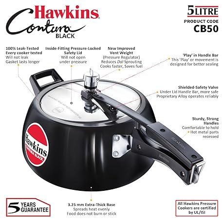 Sản phẩm HAWKINS Contura Black Pressure Cooker, 5 Litre, Black (CB50) đang được bán với giá ưu đãi là $58.8491 tại nước Mỹ.