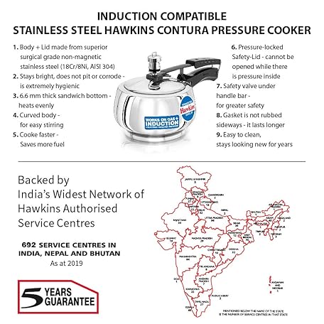 Thông tin sản phẩm Hawkins Stainless Steel Contura Induction Compatible Inner Lid Pressure Cooker, 1.5 Litre, Silver (SSC15)
