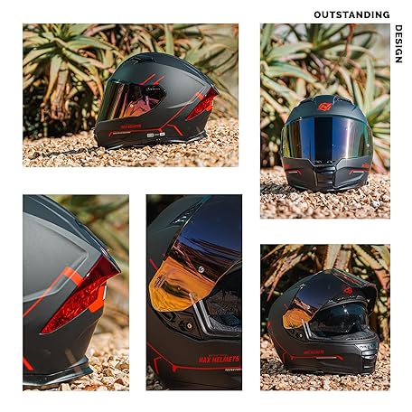 Thông tin sản phẩm HAX Force Aerodynamic Full Face Helmet for Street & E-Bikes DOT & ECE Certified - Enhanced Dual Visor, Adult Size, Pinlock Ready Matte Black Red M