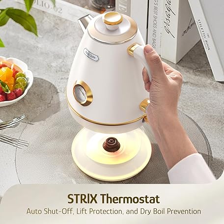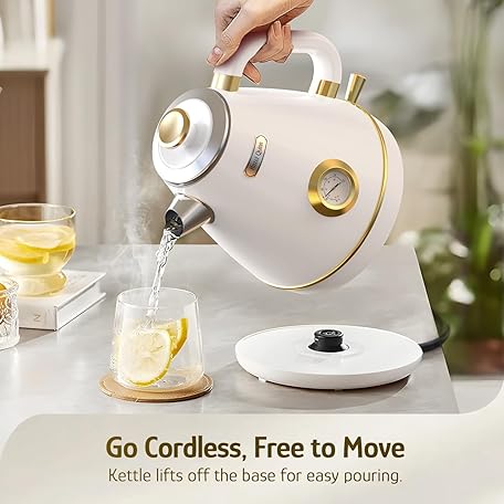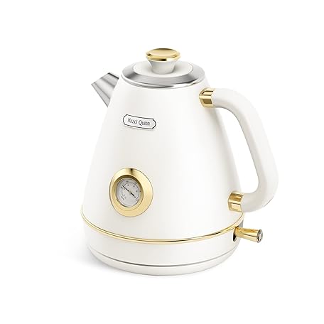 Thông tin sản phẩm Hazel Quinn Retro Electric Kettle - 1.7 Liters / 57.5 Ounces Tea Kettle with Thermometer, All Stainless Steel, 1200 Watts Fast Boiling, BPA-free, Cordless, Automatic Shut Off - Pearl White