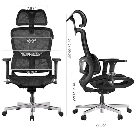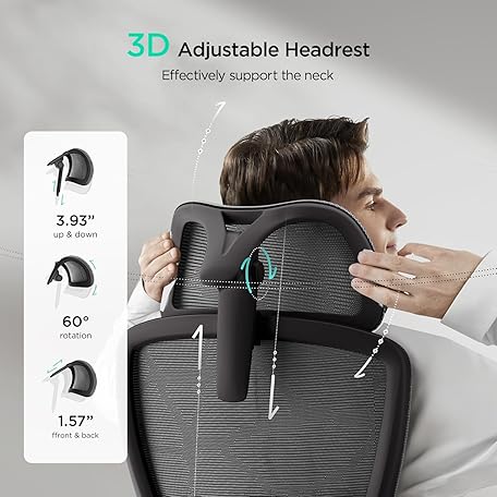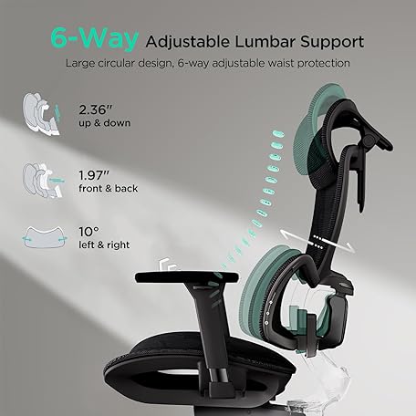 Hbada E2 Ergonomic Office Chair, Big and Tall Mesh Office Chair with 6-Way Dynamic Lumbar Support, 3D Adjustable Armrests, 3D Adjustable Headrest, High Back for Computer Chair, Black(No Footrest)