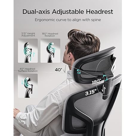 Hbada Ergonomic Office Chair with 3D Adjustable Armrests, Adjustable 3D Headrest High Back for Computer Chair, Big and Tall Mesh Office Chair, Home Office Desk Chair, Black