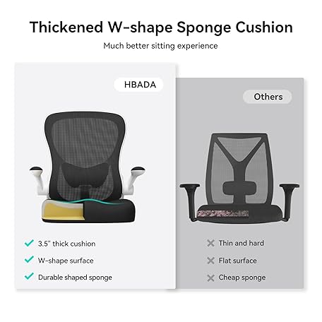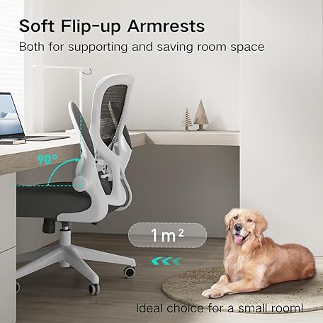 Thông tin sản phẩm Hbada Office Chair Ergonomic Desk Chair, Office Desk Chairs with PU Silent Wheels, Breathable Mesh Computer Chair with Adjustable Lumbar Support, Flip-up Armrests, Tilt Function, White