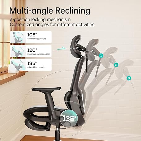 Hbada P2 Ergonomic Office Chair, Office Chair with 3D Lumbar Support, Mesh Chairs with 3D 360° Rotation Arm & 3D Headrest, 135° Stepless Tilt Function, Black(with Footrest)