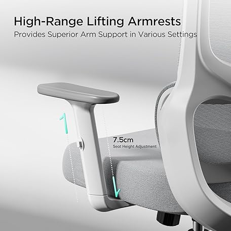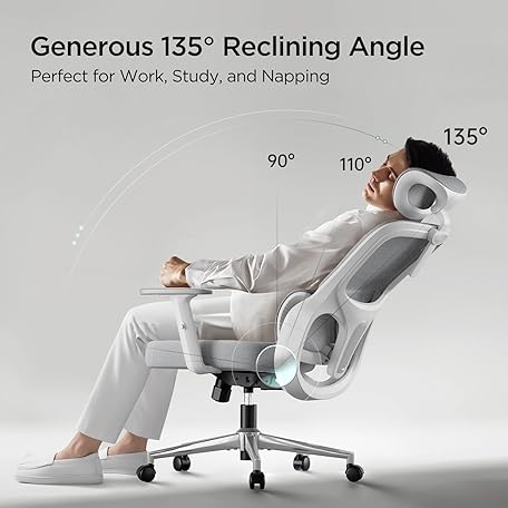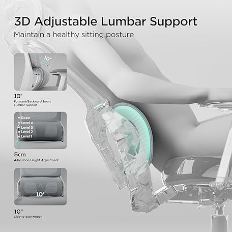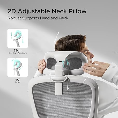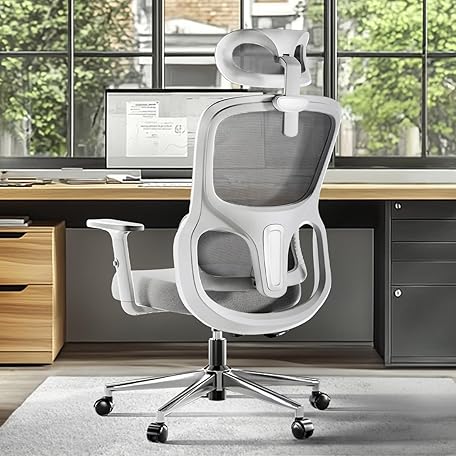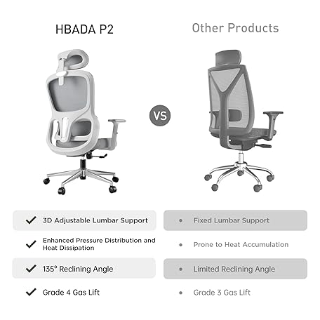 Hbada P2 Office Chair, Computer Chair with 3D Adjustable Lumbar Support, Swivel Ergonomic Office Chairs, Adjustable 2D Headrest with PU Wheels White