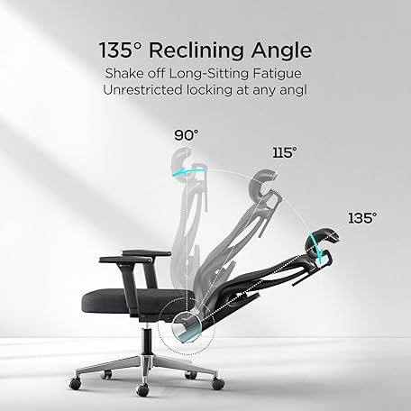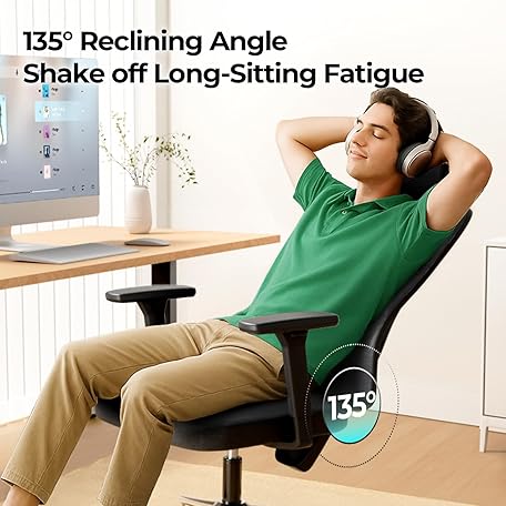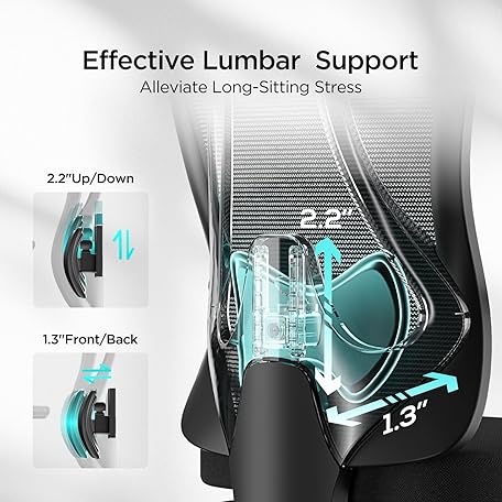 Hbada P3 Pro Ergonomic Office Chair with 2D Adjustable Lumbar Support, Office Desk Chair with 3D Adjustable Headrest and Armrests, 135° Stepless Tilt Function, Black(No Footrest)