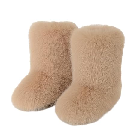 HCHCTRY Women's Colorblock Faux Fur Snow Boots, Fashionable Slip-on Plush Lined Winter Boots, Comfortable Mid-calf Boot,Shoes Height 25cm,Available in A Variety of Colors