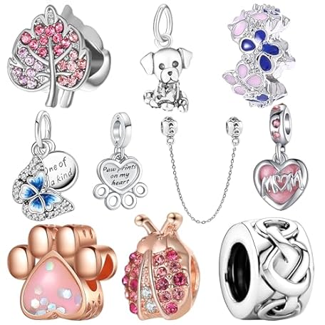 • HCMY 10 Pack Silver Bead Charms for Bracelets and Necklaces Chain Jewellery Charm for Woman