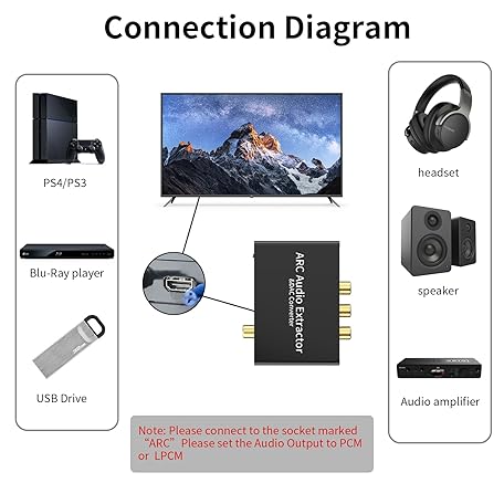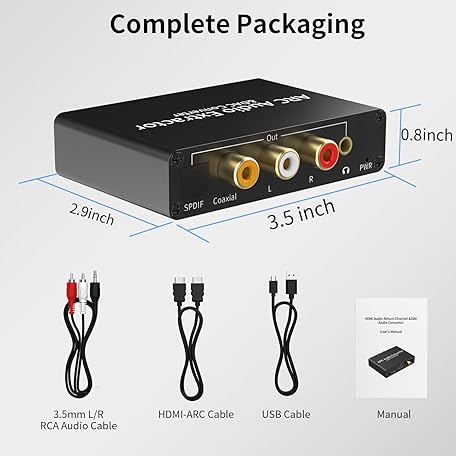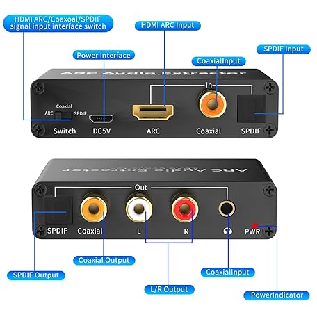 Thông tin sản phẩm HDMI ARC Audio Extractor, 192KHz DAC Audio Converter, Digital to Analog Converter for PS3 PS4 HDTV DVD Home Cinema Systems, HDMI ARC/Optical/Coaxial Input, SPDIF/Optical/RCA/3.5mm Stereo Output