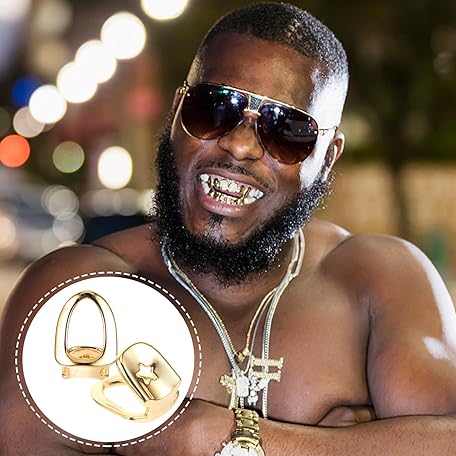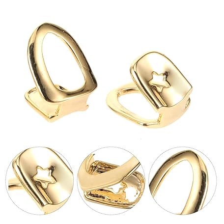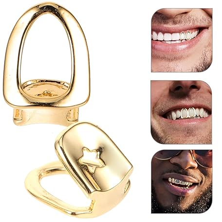 Healeved Copper Metal Grill 2pcs Gold Grills Cosplay Grill Single Tooth Caps Golden Decorative Jewelries Grills