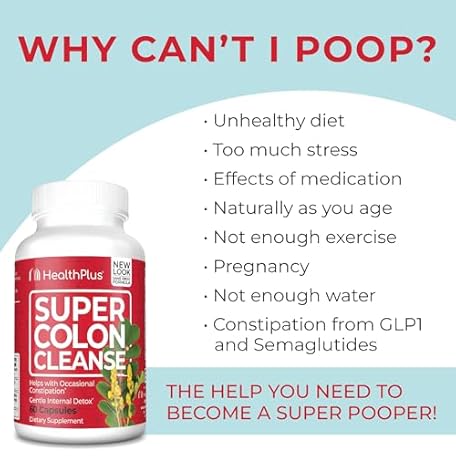Thông tin sản phẩm Health Plus Super Colon Cleanse 60 Day Supply of Gentle Gut Cleanse Detox, Psyllium Husk, Probiotics for Constipation Relief & Digestive Support, 240 Capsules