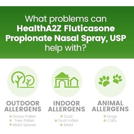 Sản phẩm HealthA2Z® Fluticasone Propionate Nasal Sprays | Allery Relief Spray | Runny Nose | Nasal Congestion | Sneezing | Itchy Watery Eyes | 24 Hour Allergy Relief | (2 Packs) đang được bán với giá ưu đãi là $27.1955 tại nước Mỹ.