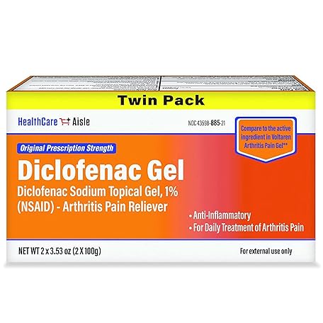 Sản phẩm HealthCareAisle Diclofenac Gel Twin Pack Diclofenac Sodium Topical Gel (NSAID) Arthritis Pain Reliever 1% 200 grams (2 x 100g) đang được bán với giá ưu đãi là $28.3291 tại nước Mỹ.