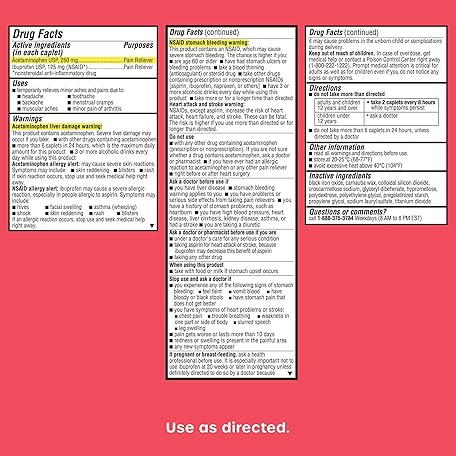 HealthCareAisle Dual Action Acetaminophen and Ibuprofen (NSAID) Tablets, 250 mg /125 mg Pain Reliever - 250ct Caplets