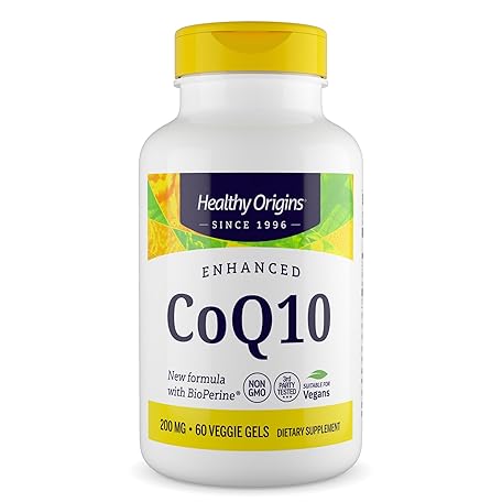 Healthy Origins Natural Enhanced CoQ10 (BioPerine®), 200 mg - Heart Health & Energy Supplement - Gluten-Free & Non-GMO Supplements, with BioPerine & Sunflower Lecithin ((Pack of 1) 60 Veggie Gels)