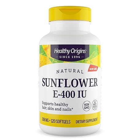 Thông tin sản phẩm Healthy Origins Sunflower Vitamin E-400 IU (Non-GMO, Gluten Free, Soy Free, Hair Support, Nail Support, Skin Support, Cardiovascular Support), 120 Softgels