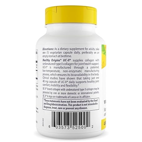 Thông tin sản phẩm Healthy Origins UC-II 40 mg (Undenatured Type II Collagen, Non-GMO, Gluten Free, Joint Support), 120 Veggie Caps