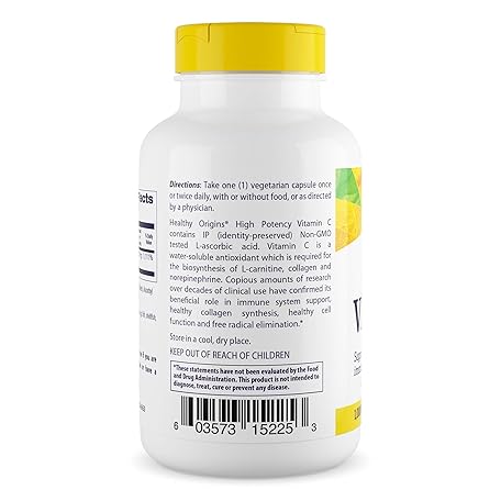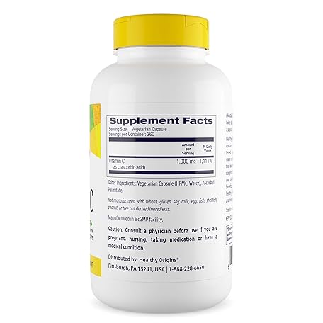 Thông tin sản phẩm Healthy Origins Vitamin C 1,000 mg (Non-GMO Tested, High Potency, Immune Support, Vegan), 360 Veggie Caps