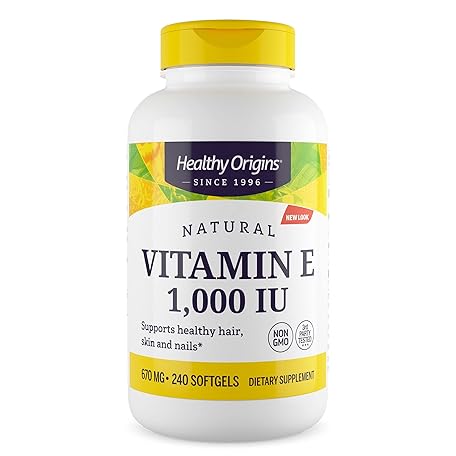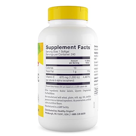 Thông tin sản phẩm Healthy Origins Vitamin E 1,000 IU (Natural, Non-GMO, Gluten Free, Skin Support, Cardiovascular Support), 240 Softgels