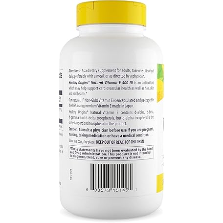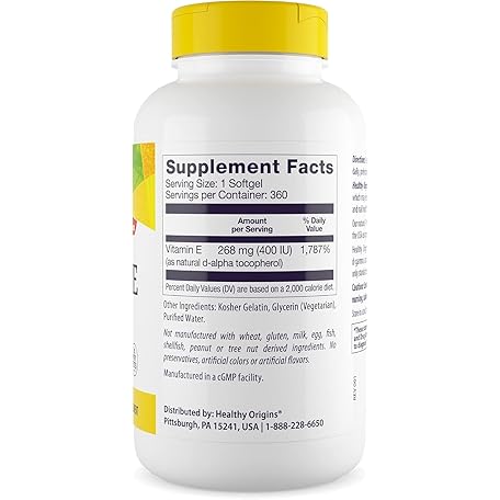 Thông tin sản phẩm Healthy Origins Vitamin E 400 IU (Natural, Non-GMO, Gluten Free, Skin Support, Cardiovascular Support), 360 Softgels