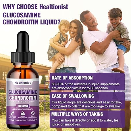 Thông tin sản phẩm Healtionist 2 Pack Glucosamine Chondroitin MSM Liquid Drops, Extra Strength Joint Support Supplement for Adults Men & Women, Quercetin Boswelia, Bromelain, Antioxidant Immune Support (4 Fl oz)