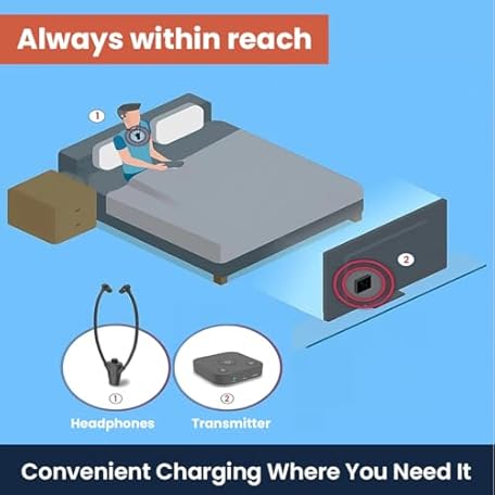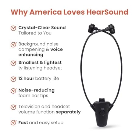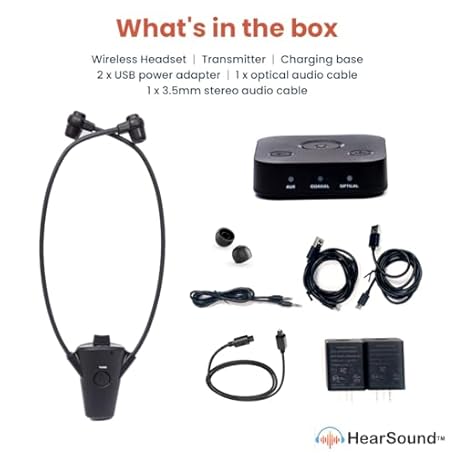 HearSound Gold - Digital Wireless Headset System for TV with Earbuds - Ideal for Seniors or Hearing Impaired - All TVs Compatible, No line of sight required, 100 ft. range, Rechargeable 12hr battery