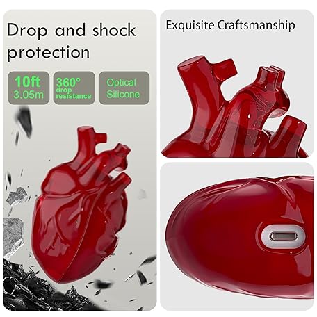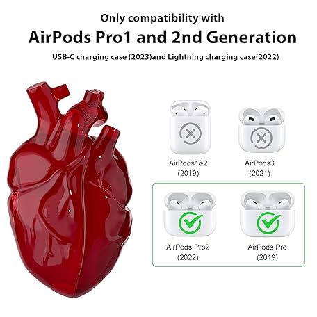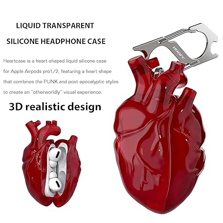 • Heart-Shaped Liquid Silicone Protective Case for AirPods Pro 2/1 – Drop-Proof Cover with Metal Hook, Compatible with AirPods Pro Charging Case (Red)