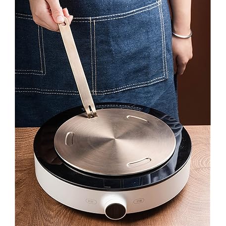 Heat Diffuser Plate, Grouarty Stainless Steel Cooking Induction Adapter Simmer Plate for Electric Gas Glass Cooktop Hob Ring, Induction Cooktop Converter Plate With Handle (9.45 inch)